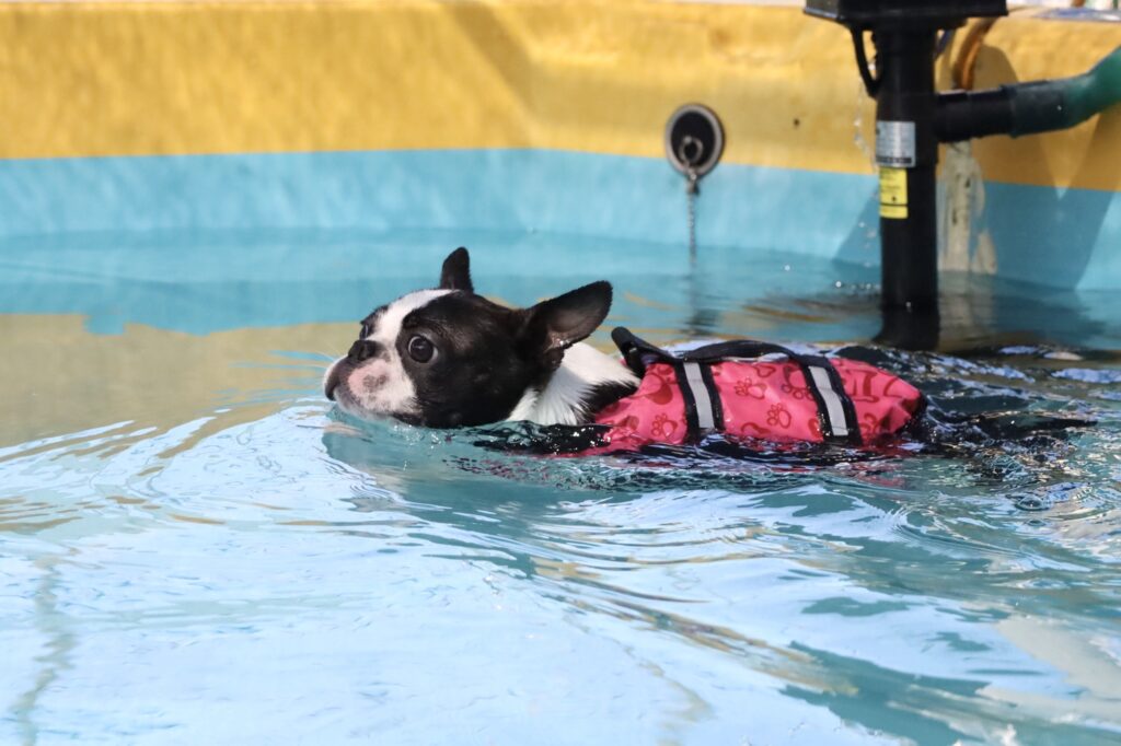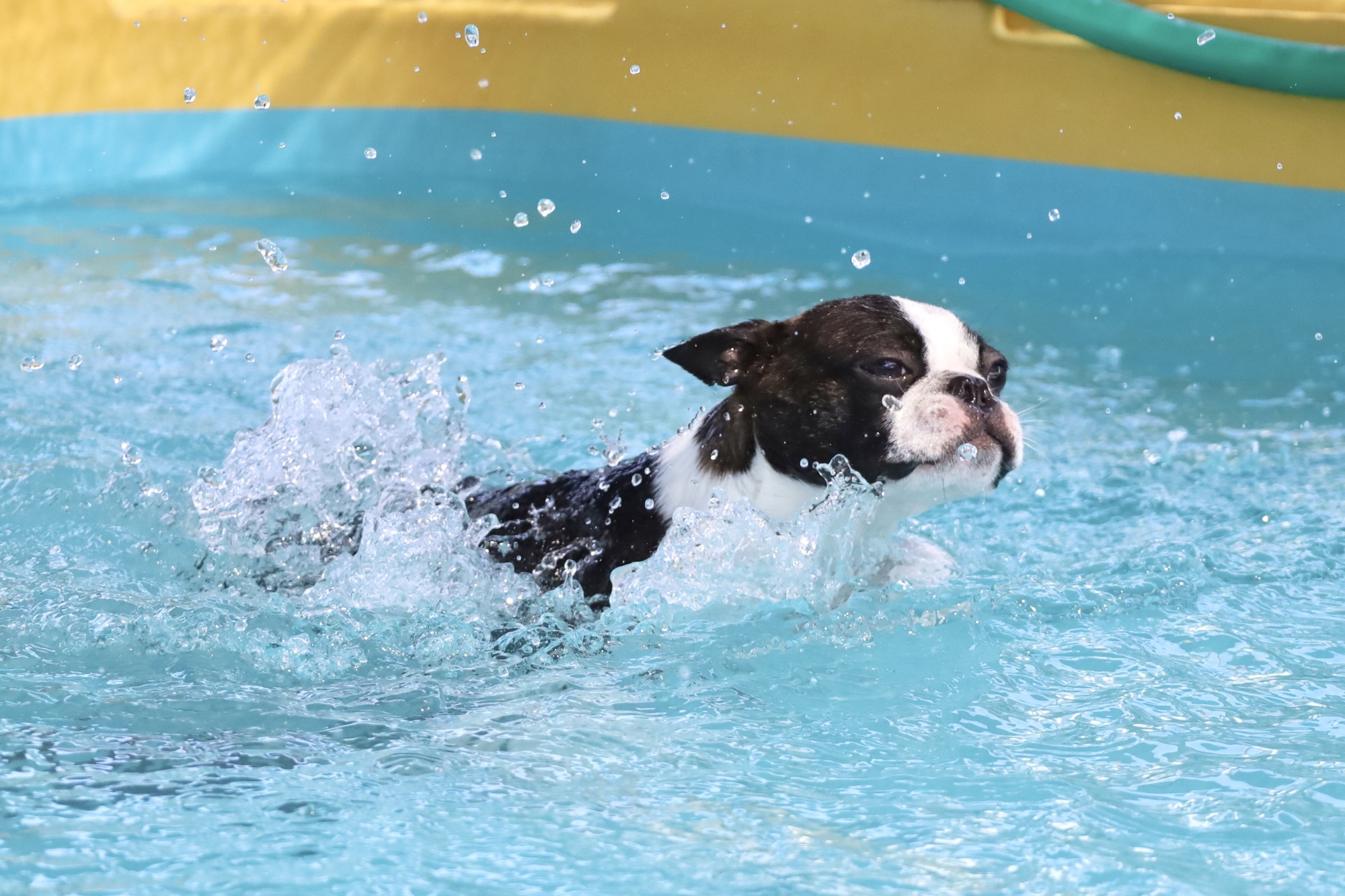 我が家の内弁慶ボステリ、チャビィがこの夏プールデビューしました。