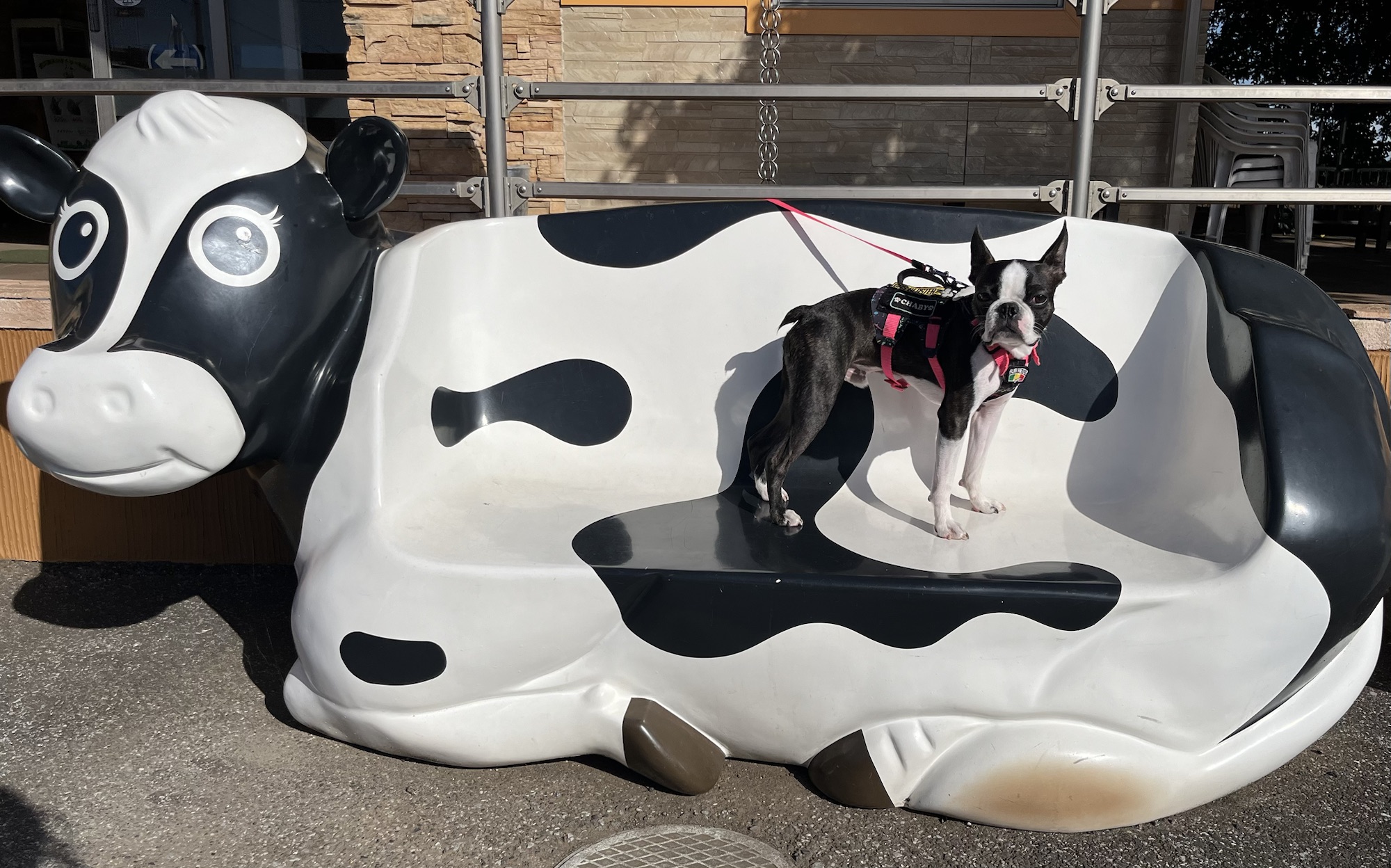 ドッグラン【DOG PARK TREE】さんへ行った帰り、牛さんのオブジェが目立つログハウスを発見!