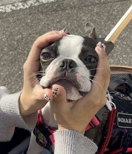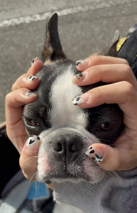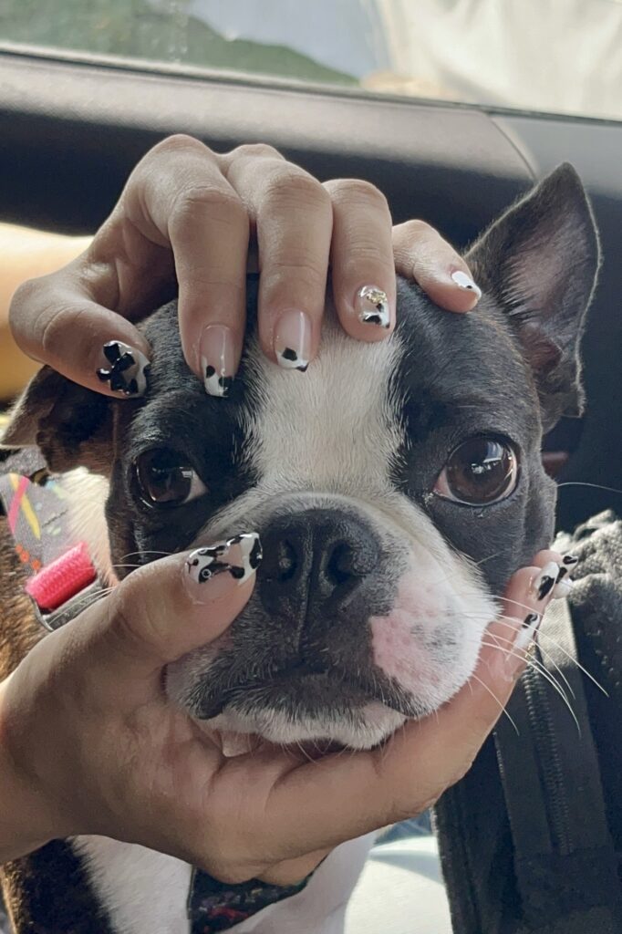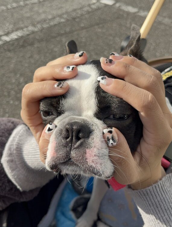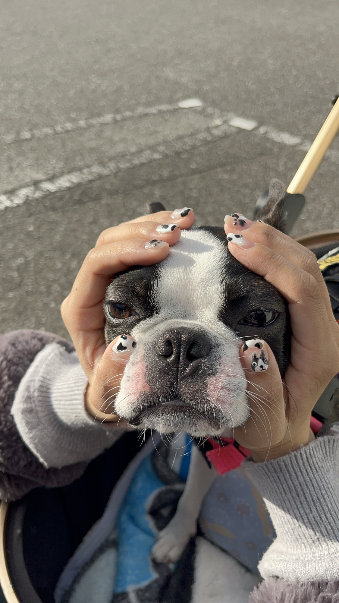 毎回犬(特にボストンテリア)をイメージしたネイル縛りでやってきているのですが、ここ2回は牛柄ネイルが続いてしまっている…。