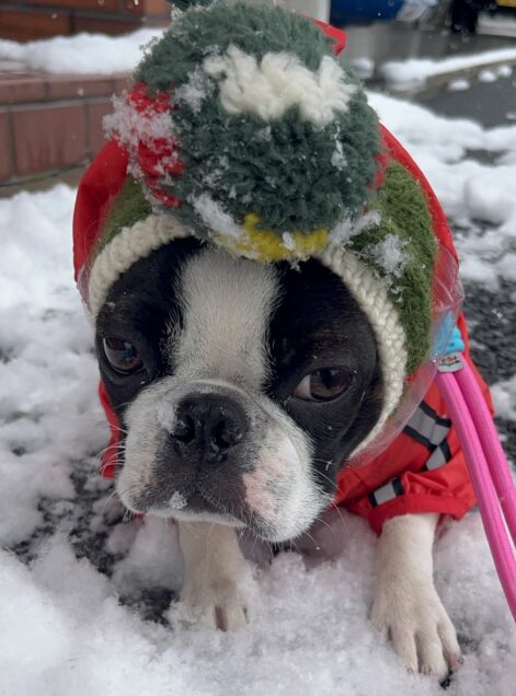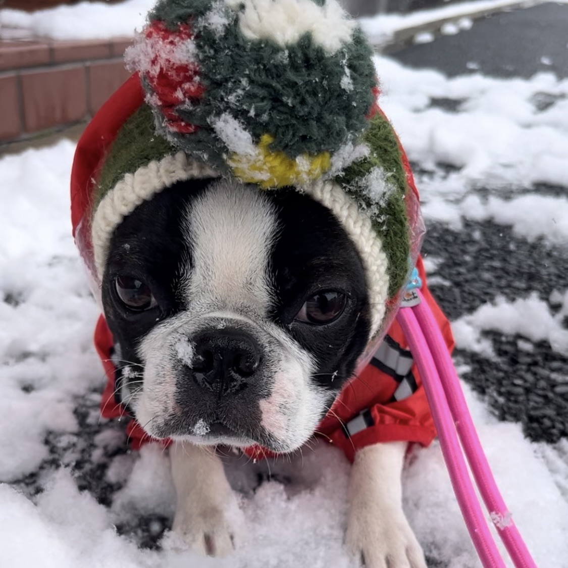 せっかくなので雪が降っているうちにチャビィをお外へ連れ出してみました。